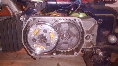 Garelli team engine case matched for the 70cc polini, polini kit, polini reeds, polini phbg intake, phbg 19.5 carb, cev white coil and cdi box, cheapo cdi coil, straight cut gears, hammer clutch, rebuilt bottom end, and modified Tomos A3 homoet pipe. Next up is jetting, lights, chain, sprockets, and cables