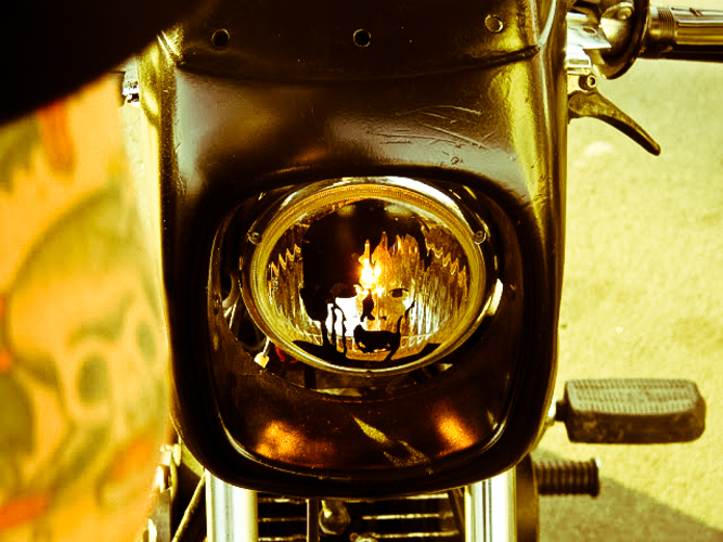 Got it in Kansas City with a broken throttle cable and 200 miles on the OD. Was a totally complete bike and I took all the crap that would break off. I rode it at 11 rallies last year and you can tell. People give me grief, but you cant keep "rare" bikes cooped up in garages fearing dings. Stockish and looks real good with a girl on the back. Stock Varo with 1 weight taken out and a Home Alone headlight sticker, YOU KNOW!!!!!!!!!!!