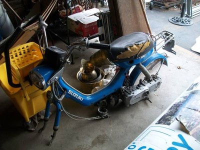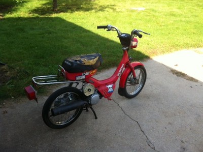 $50 Craigslist "parts bike," engine locked up, parts missing, clearly abused by previous owners. Another very incomplete FA50 scored off CL for $25 provided rear fender & cleaner carb as well as spares. Now running and making my 1.5 mile commute fun! I plan on restoring it this winter & adding some go-fast goodies.
