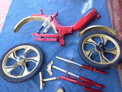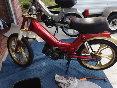 My first build, 1994 tomos targa in the stripping and powder coating faze, I have the painted Body and started to build.. will be adding a 70cc cylinder Kit, exhaust and Carb... Just re upholstered the original seat.. came out pretty good for not touching a sewing machine in close to 15 years...