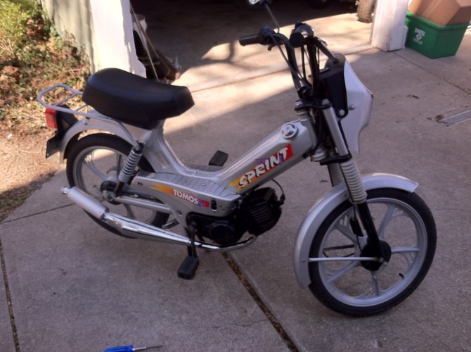 Stock 1996 Tomos A35 with only an aftermarket exhaust. Up jetted to account for larger expansion chamber in aftermarket pipe.
