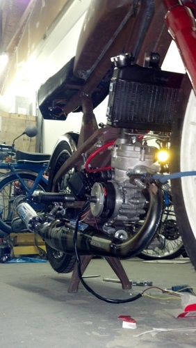 Not complete, but getting there. Motobecane 40T turned into a top tank water cooled monster.