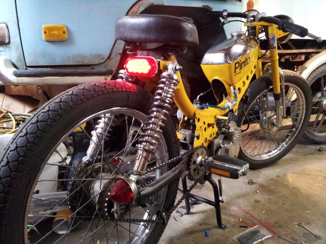 after market chrome coil over maxi rear shocks ( fit with minor frame modification).