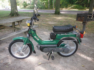 I would call it subtle yet important modifications to a machine already in running,excellent mode. All I did was add a 6volt battery with flasher to mount rear turn signals. Front signals soon. I added foot pegs from my drumkit assorted hardware. Cleaned carb and added new petcock. Fixed horn...I added mirrors as well...pedal shaft was horizontally wobbly which made starting difficult so I simply found the groove where a washer was missing and now it starts first time, every time.. I added chrome auto door trim to the mag wheels and around the seat and a few other places. It gets a real nice look at night....Probably forgot a few things but I haven't put one drill hole anywhere on the bike as I want to keep it spotless. But I love this damn moped.