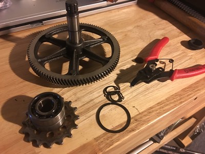 Next on the list is to replace the drive gear, replace the old rusty studs with new ones, and order the 70cc k-star party pack from Treats.