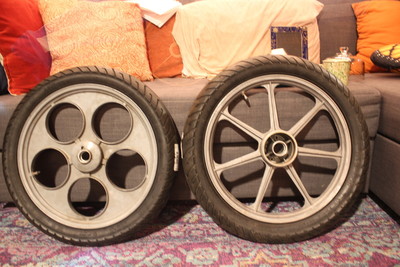 Bought this bike in 2011 and waited till 2020 to dig it out and make it my stock class track bike for NEMA this year. Lambo front mag, with Razze 7 rear, both sealed bearing. Sava MC2 front and rear. 16t front sprocket, 44t rear. geared for track acceleration. Overhauling the Domino controls, building rear fairing with grandfather, chain, weld the pipe and extended brake tabs... THEN ready to rebuild engine. Trying to talk myself out of a Polini CP 15mm (max carb for class).