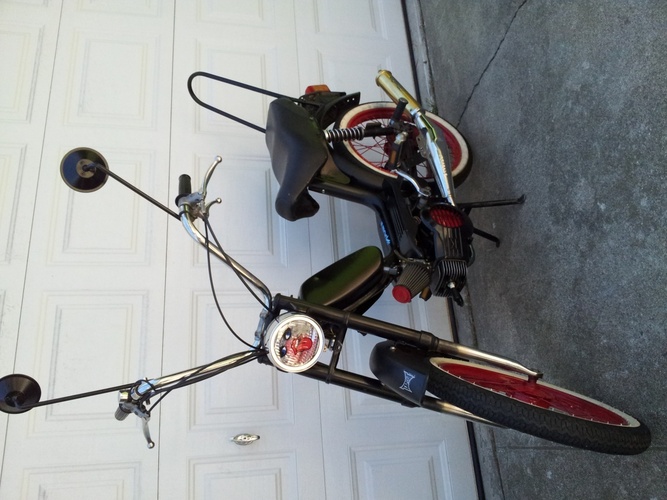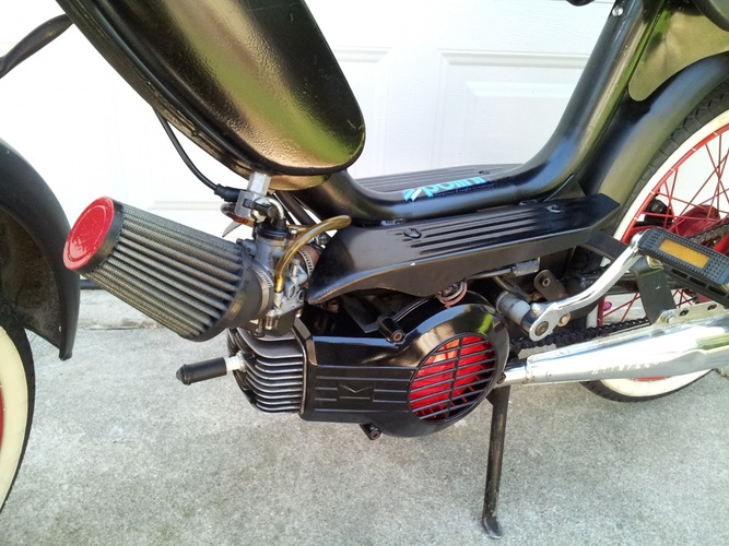 Have a clean 77' Yankee Peddler. 2nd owner of this bike. Has been very reliable. Made over, has: 75cc Pollini kit, Treats intake, 21mm Dellorto carb, stock ignition and Bi-Turbo pipe. Clean paint with red painted wheels wrapped in www tires, Rat Rod look. Can do 50+ mph!!