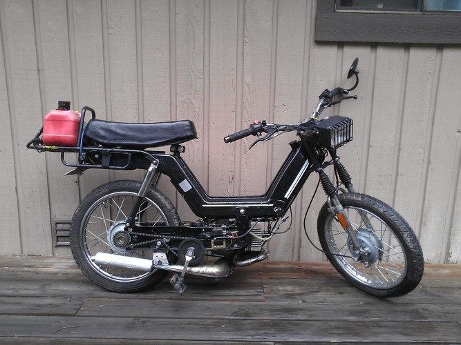 Malossi 46.5mm kit; piston ports matched, exhaust runner ported and polished, Bravo head, no head gasket.