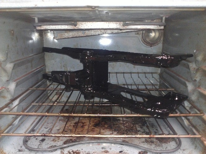 Seam-welded and heavily reinforced sub frame top and bottom with flat stock, chopped stand bracket, chopped highway pegs, relocated brake cable bracket, reinfoced shock mounts.