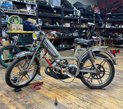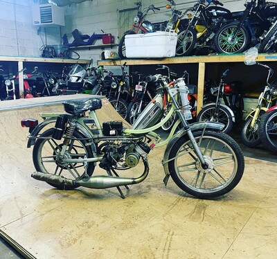 UpJet 103! I drove to NYC to pick this bike up, big thanks to Nick UpJet for holding it for me! Since my other 103's are all complex builds, I decided to keep this one simple, Crate motor bottom end, Le Partie CDI, 15 SHA, TSM head, in the pictures it has a Mini Circuit from DOS, and a Teknix cylinder, however I had a cheapo 6 port 50cc Airsal on the shelf, so I swapped to that with a Simonini Circuit I had laying around as well, modified the stock vario, and called it a day. Nothing fancy hear, just your basic 35-40mph Frenchie, reliable, and quick off the line, it will be one of my go to daily's for the 2020 commuting season.