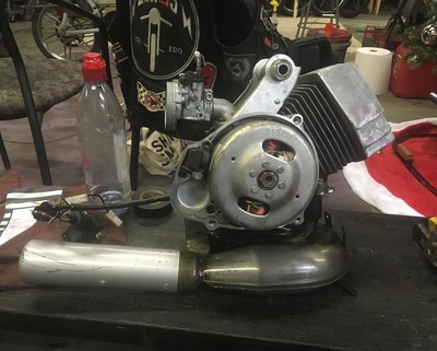 This bike was to slow, and at the time I didnt have any air-cooled fast 103's, soooo I tossed a Polini circuit, and a 64cc cast iron Malossi on it! a needed upgrade, now it does 47mph, still using the 15/15 sha, and stays well under 350 degrees (coooool for a 70cc Frenchie!)
