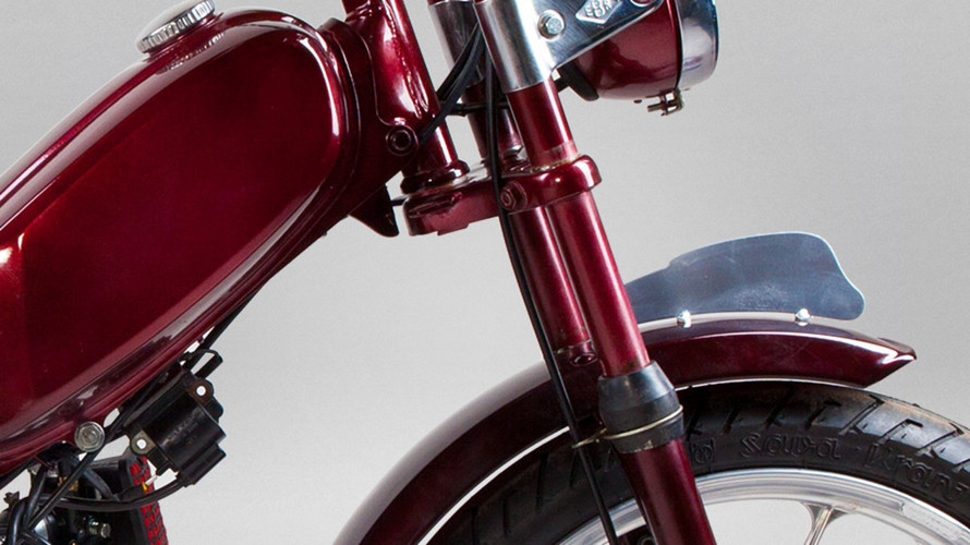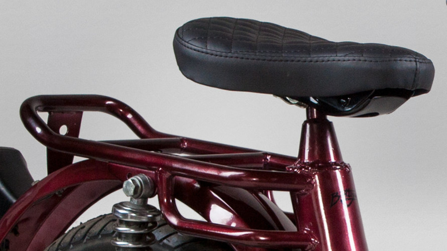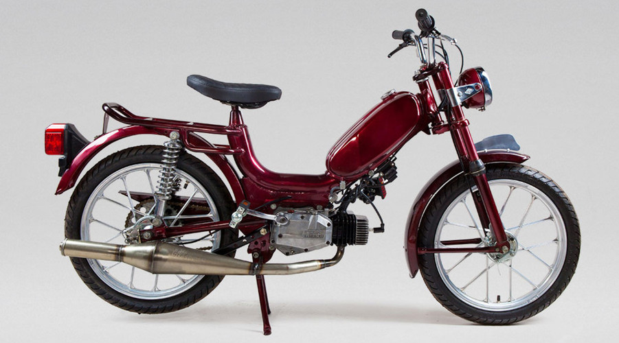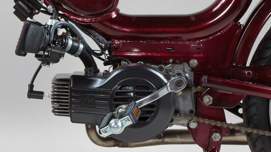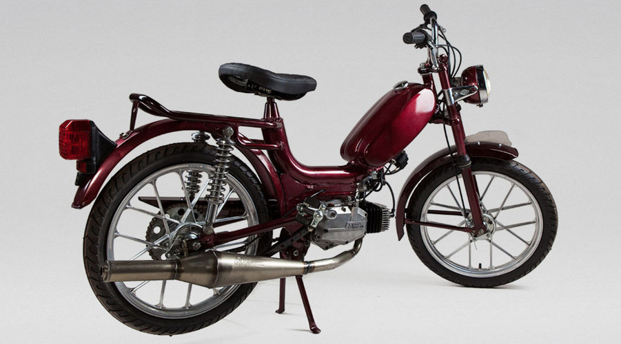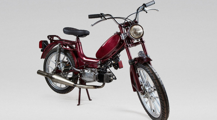 This bike has got a whole lot of swagger. Starting with a top-to-bottom engine rebuild, 21mm Dellorto racing carb and EV racing exhaust. This sexy step-through was powder coated in Oxblood Red for a slightly sinister look. Polished chrome accents keep her classy. The seat was modified to sit lower and further back for an extra comfortable ride, and reupholstered in black leather with diamond tuck detail. The finished product looks as good as it sounds.