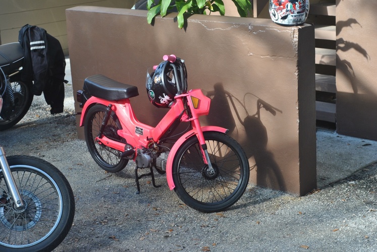 xpalmerx built my bike so i could cruise with hime and the dirtypetcocks in sarasota . this pink sparkly bike rips hard and is faster than quite a few of palmers bikes ... plus looks good while doing it .