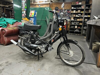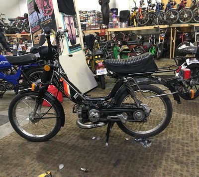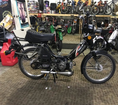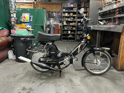 I have never really built a Hobbit, so why not start at the most basic level? So I started with a stock BlK hobbit, added a ported Stocko Shocko kit (60cc's), clone Jahyling carb, Derbi 3 Roller, and a Proma ( I originally tired a new Simonini circuit but its fitment was terrible). I tried a few varios on this, stock pa50-2 windowed, stock Derbi 3-roller unmodified, and a modified Derbi 3-roller (knub removed from the bottom of the cheek), of which the modified Derbi 3 roller was the fastest, not the quickest of the 3, but the most top end with good lows. The bike does 41mph for as long as you care to hold the throttle, with some fresh rubber its a comfy ride!