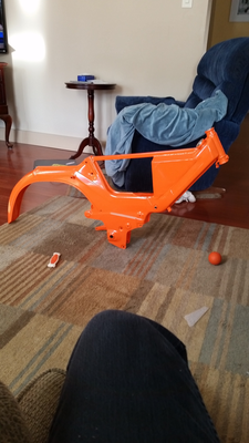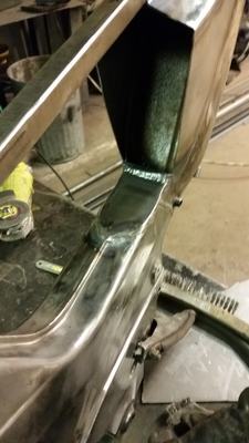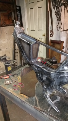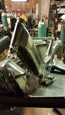 That addition on the cross bar is a fully functional gas tank addition that I sealed with POR15. I also closed off a section of the tank so the petcock is the lowest place im the tank allowing me to empty all the gas out easier. It can hold somewhere around 1.5 gallons, though I will update this when I figure out exactly how much.
