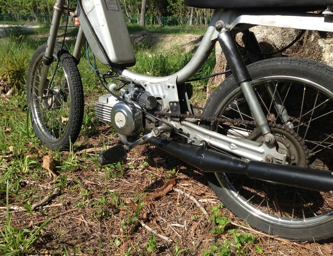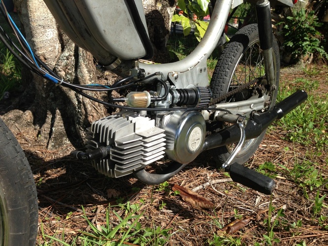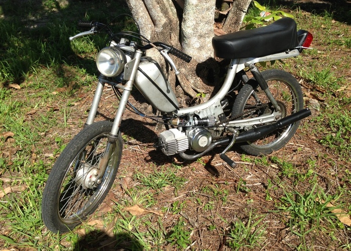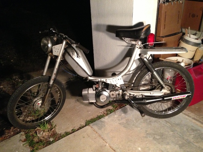 This is a 1982 Murray that I found at a mechanics place down the street from or house that had been impounded due to a DUI from the previous owner. We got it for $150 and this thing has become my kit hamster. New carb, pipe, bars, light, seat, and 70cc k-star kit. This is just the beginning for this thing. Recently replaced the crank and got a Treats 70cc Reed kit, and MLM 15 mm intake.