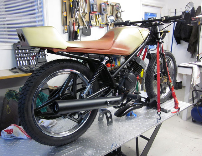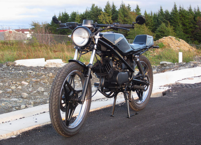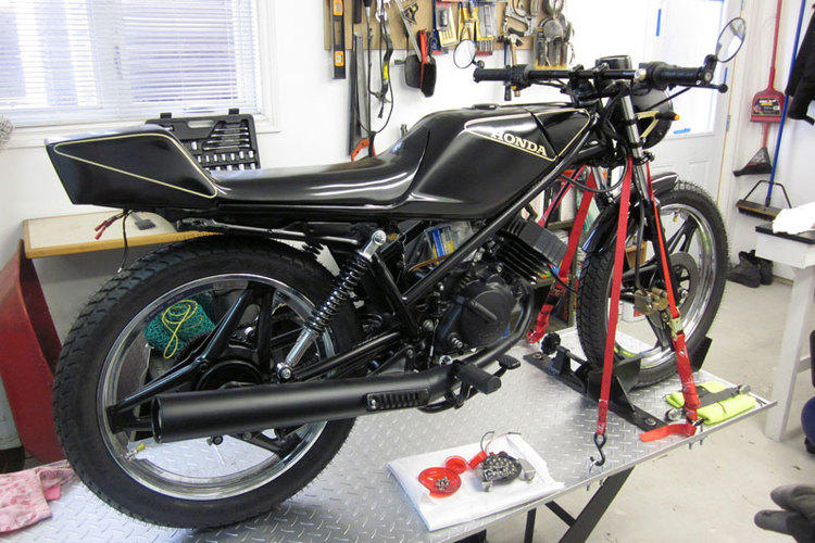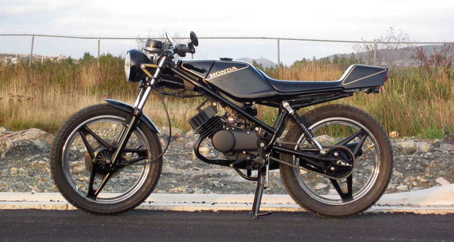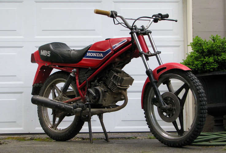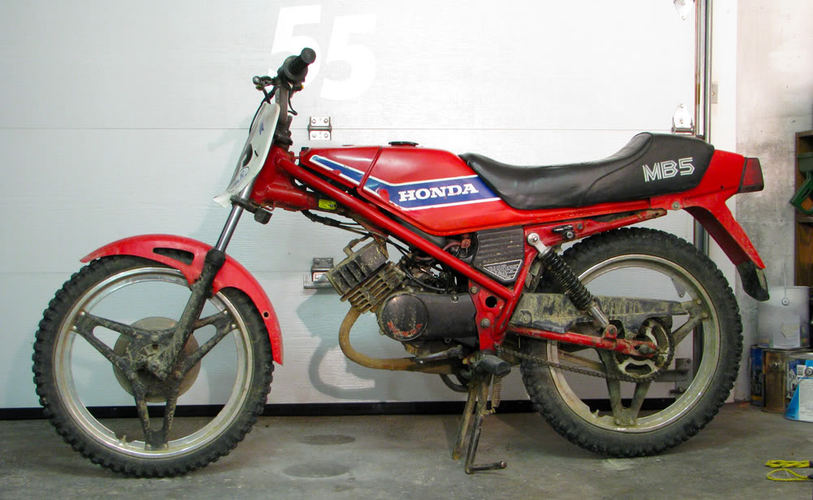1982 Honda MB5 - stock engine and pipe with a Mikuni VM20, Uni filter and Boyesen Power Reeds. Stock sprockets as well.