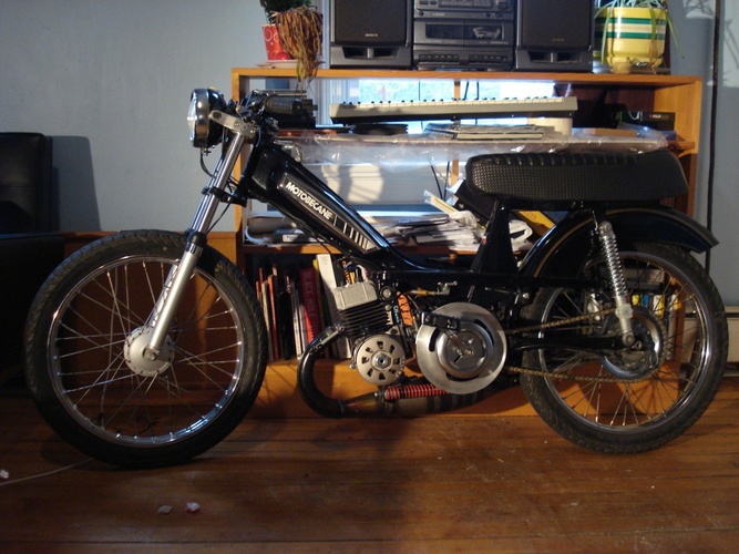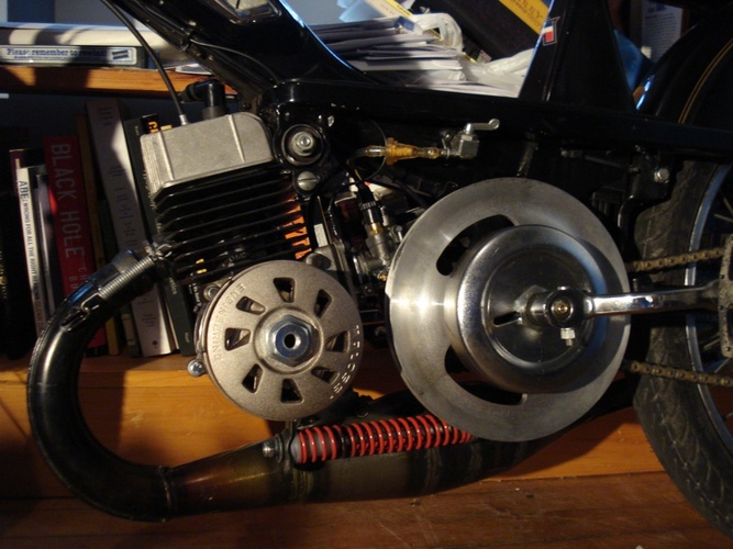 This is the first AV10 i built. It went great with the Lazer forks but the gas tank started leaking for the second time so had to buy a 40T. I ran it with a doppler clutch pulley, Malossi variator, Doppler engine spring and custom welded handlebar stubs