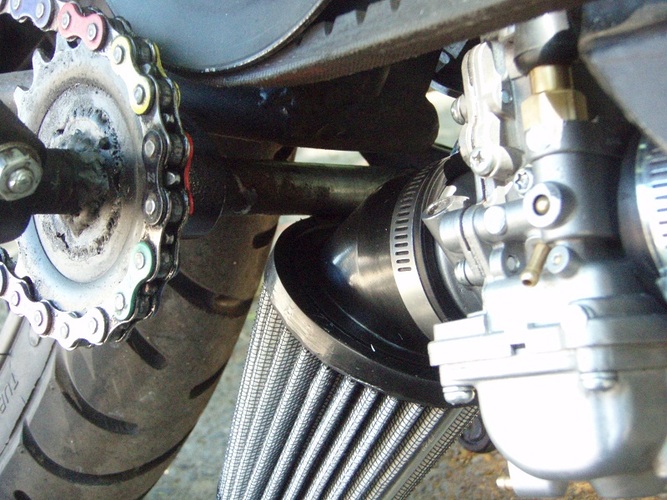 intake - Puch Gila reeds, Tony S reed block, 24mm shorty intake and 24mm Mikuni, 45deg K&N filter