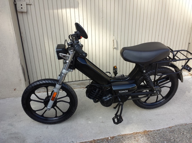 Black Tomos By James Culver · Tomos ST · 2009 Added Feb 19, 2014 · Updated Feb 19, 2014 ♥ 1 like ‹ › 1 / 3 × ‹ › A Black Tomos. With black wheels. Parts engine Tomos A55 Tomos A55 70cc Airsal stock exhaust Tomos A55 Biturbo electrical Tomos A55 OEM CDI carburetion Dellorto 21mm PHBG -Racing Edition Tuning Main 75 · Idle 45 · Starter 55 Comments (1) James Culver — 12 years, 1 month ago I Just upgraded to MLM Cali side-bleed. MUCH Better! 29x22 gearing.