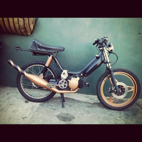 Plastidip frame, and tank. MB5 front forks, brakes, and rim. Domino controls, trail tech vapor. Dio/trickmetric/weak-ends combo.