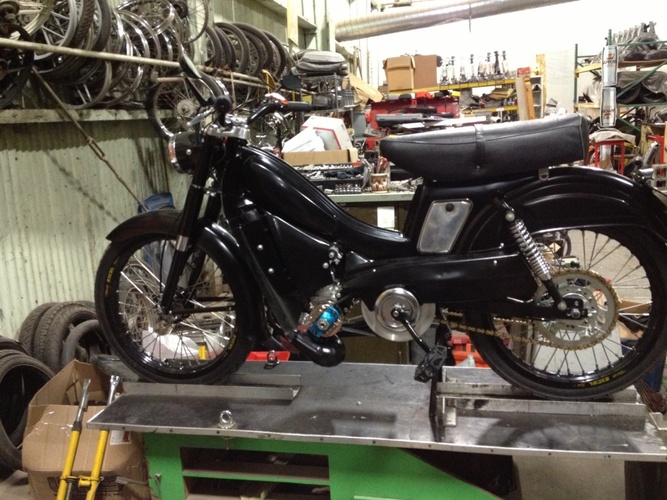 Blackout By Levi Harris · Motobecane 88L · 1959 Added Sep 29, 2012 · Updated Jul 6, 2013 ♥ 27 likes ‹ › 1 / 19 × ‹ › Nastiest sleeper I could dream up. Now in Red! Parts carburetion Mikuni 28mm TM engine 94cc scooter kit exhaust Motomatic Twister Comments (9) Carl-Joh Alsing — 12 years, 9 months ago Awesome! Love that engine! And the rest of it of course. Great job. Barry Torno — 13 years, 5 months ago I got the chance to ride this the other day and its super quick off the line and so fun to ride. Great build Levi Nash Wiley — 13 years, 5 months ago holy shit. WillD — 13 years, 5 months ago lovelovelovelove Andy Simpson — 13 years, 5 months ago that's terrifying! fuck yes! Team Dirtped — 13 years, 6 months ago That is just redonkulous. Christopher Squid — 13 years, 6 months ago Bring this out soon I want to ride this fucker Levi!!! Jeremy Husk — 13 years, 6 months ago so sick great job man!! Dan Kastner — 13 years, 6 months ago Such a crazy sleeper!