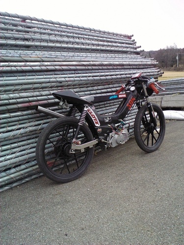 This is a daily rider as well as a weekend racer. It performs extremely well as an all around bike. It tops around 53MPH at 10,600 RPM with 18x45 gears. Temps rarely break 380 with 110 octane mixed 50:1 Klotz super T.