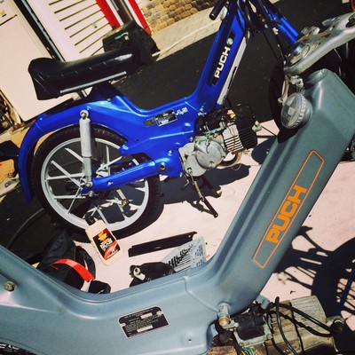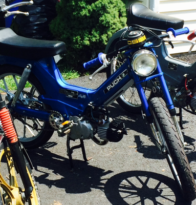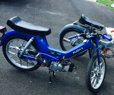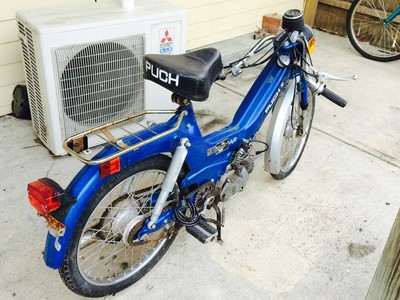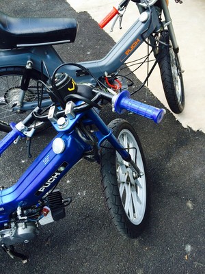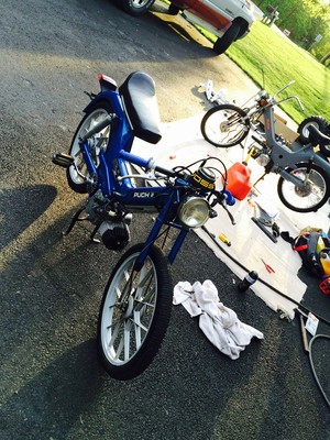 Bike has all original blue paint. Engine has been rebuilt with a 70cc kit + high compression head with an expansion chamber exhaust.