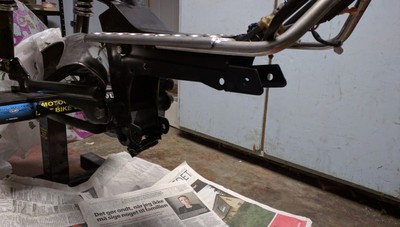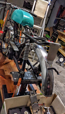 12.192016 Cut out some weld steel for new M101 mounts, exhaust mount and tail light mount. Brought the bike over to a friends house who knows how to weld. ( a skill I currently lack. ) All mounts have been added. I also picked up the following items for installation: