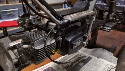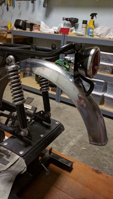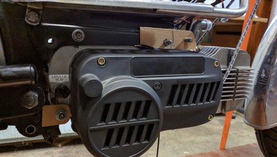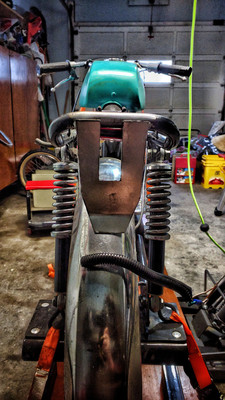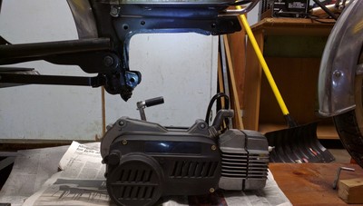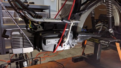 12.30.2016 Mounted Engine. Installed 15mm MLM intake. Installed 15.15 Dellorto SHA. Installed Ignition Coil. Wired in Tail light. Need to add some more wire covering.