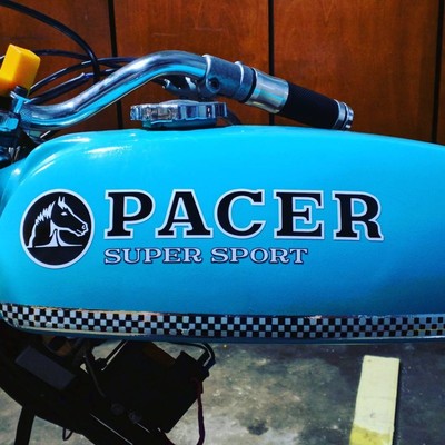 05.01.2017 Late Update: Bought new brakes, Converted Rear wheel to sealed bearings after the wheel lost a bearing. Installed new custom Pacer stickers I designed to the tank. As Also added some NOS checker stickers to the bottom of the tank. (Thanks Luke for the awesome help on the Pacer stickers.) Bought some universal tools for the tool bag.