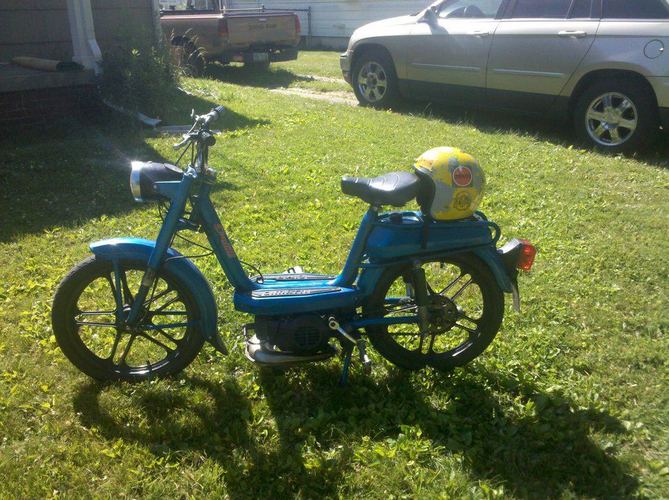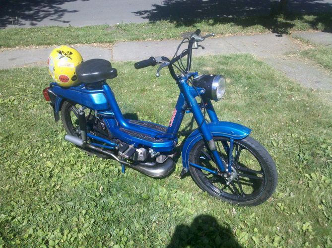 This is one of my daily riders, its loud comfy and fast. Polini kit matched with a VM20, Ed's clutch springs and a circuit pipe with 10x36 gearing makes for a fun low end ripper that can cruise at a solid 45 while pulling wheelies anywhere in the throttle.
