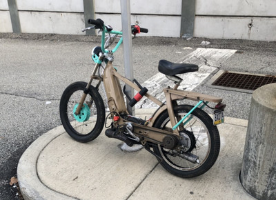 Ciao frame with a cross bar welded in as well as welded joints to make the frame stronger. Bravo forks, bmx bars and rims, ported stock cylinder, yz85 pipe, kinetic hubs, led lights regulated and rectified.