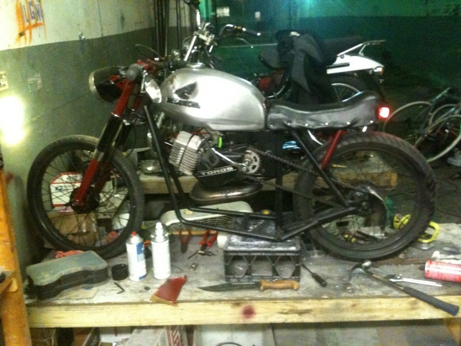 Boberic Bobber By Eric Brunner · Unknown Unknown Added Sep 27, 2012 · Updated Sep 27, 2012 ♥ 9 likes ‹ › 1 / 9 × ‹ › custom bobber moped using tomos a35 and and honda tank ridged rear end Parts engine Tomos A35 carburetion Dellorto 15.15 SHA -Lever Choke exhaust Tomos A35 Techno Circuit Tuning Main 89 Comments (2) Jaime Near — 13 years, 4 months ago Pretty cool. I've got an xl70 chassis and an a35 and your bike inspires me. Eric Brunner — 13 years, 5 months ago finally finished this... enough to ride until i build a new one