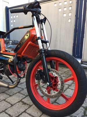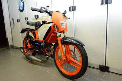 Just a spleen to add a bit more spice to my collection with that entirely powder coated orange 12hp (DIN) engine max.125 km/h. Even the engine and the LC-cylinder are coated..Not yet finished..to be continued
