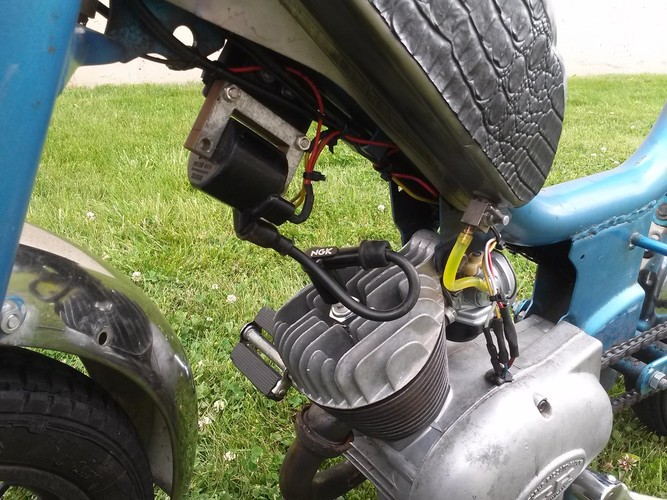 Just got this over the weekend and spent about 4 hours repairing and rewiring. Added a jammy pipe and tuned the 14.12. Pulls really hard. Crap paint job on the tank is getting redone. Spilled some gas on it and the black started to come off.