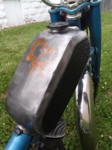 Update 8/1/2014 - Stripped the tank and added a rust design, cut alligator skin inserts. Built a custom tail light. Custom graphics. Stock pipe is back on it as I had to use the chamber for something else. Getting another pipe for it.