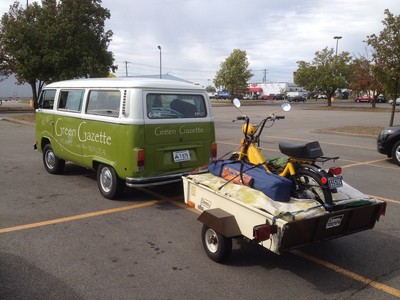 I camp a bit in my VW Bus and thought adding the Hobbit made a nice rig. Considering a CDI ignition and a decent pipe on the Hobbit. The bus has the very same mods. Might try knobbier tires too. I'd like to paint it and the trailer to match the bus. The trailer is an '83 Coleman VersaTrailer. Air Cooled, 8 wheels, 5 cylinders, sleeps 4. I love this rig.