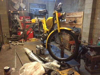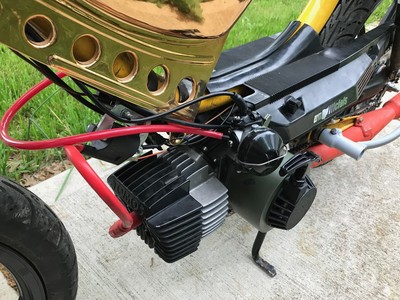 Puch Techno Boss hacked to fit A35 and painted flame proof red