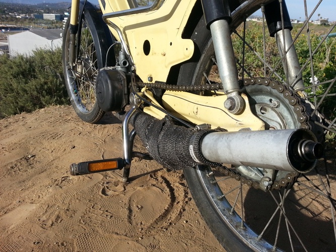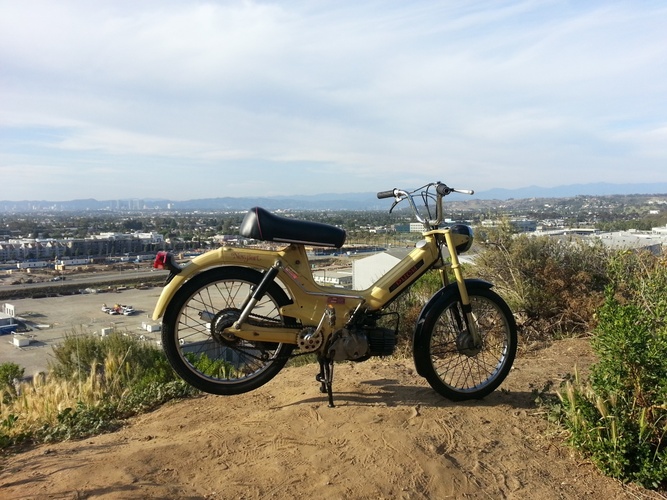 Its a fun strong stock moped. Need to get some where this will get you there. Does a good steady 40mph. Clean up the wiring and hard wired it.
