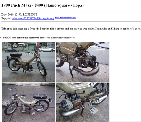 Bought it in San Francisco; rebuilt it near Sacramento; rode it a year; shipped it to Atlanta; rode it a year; sold it.