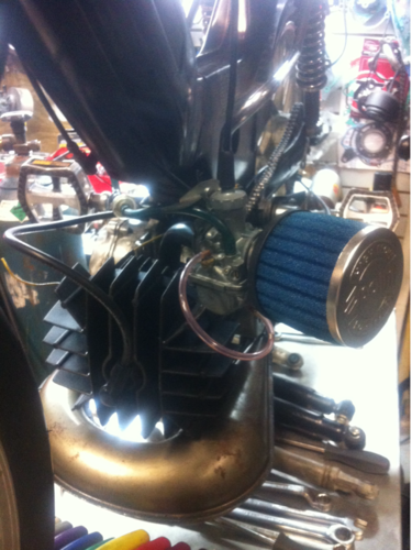 Puch maxi long seat ,clubman bars,metra 65,metra head ,mlm,intake,18 mikuni ,ported ,matched ,welded cases ,custom clutch ,snow flakes orig paint,korado head light fairing