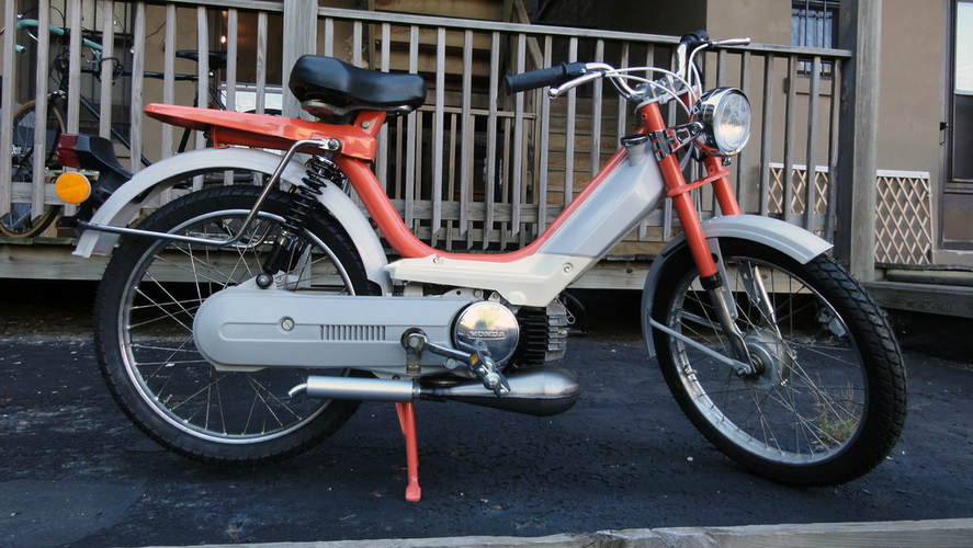 Creamsicle By Erin Althoff · Honda Hobbit · 1982 Added Sep 24, 2012 · Updated Sep 24, 2012 ♥ 3 likes ‹ › 1 / 3 × ‹ › Modified Honda Pa50I engine. Powdercoated salmon and grey, modified controls and bars. "Etched glass" headlamp sticker. Parts engine Honda PA50I Honda 70cc DR exhaust Honda Hobbit Camino Proma Comments (1) Dan Kastner — 13 years, 6 months ago I love the headlight etching!