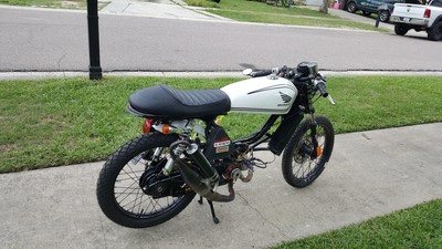 V.3 completed in updated cafe white. 1-gallon tanks don't get very far with these thirsty beasts. Went through 2 athena kits, 1 DR kit before going water cooled. Best decision I've made from the Hobbit Malossi H20 kit to scooter kits they have all been super reliable. Goal was to build one of the fastest (not quickest) and reliable* Honda Hobbits/Camino's on earth. https://youtu.be/YNgiuXIgRvE