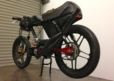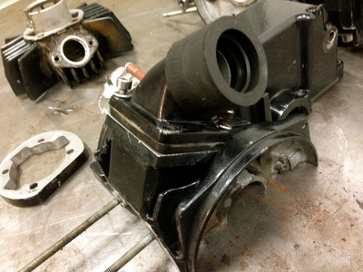 By far it is hands down the fastest bike I have ever been on. When I first got it, it had somehow survived being locked up outside in a crappy neighborhood for a number of weeks or months. It took three tear downs to stop the leaks from the reed cage that was welded on to the e50. There were several seams that needed sealing. It did have the Treat's CDI on it but those are crap and there's no way it could keep up with the revs. The mini rotors really working great with this set up.