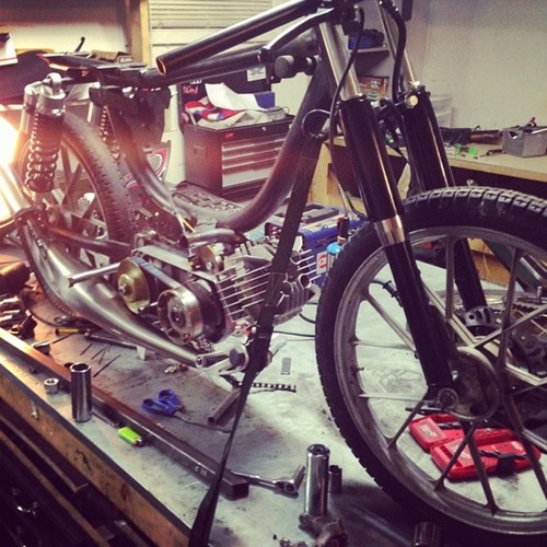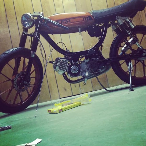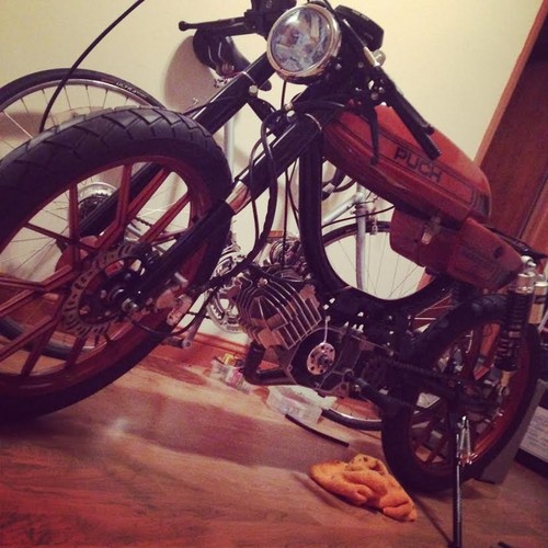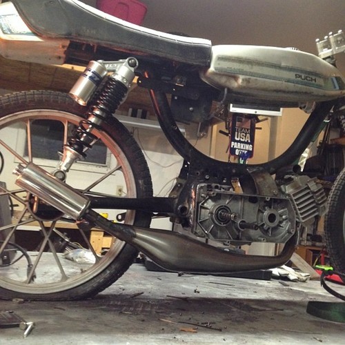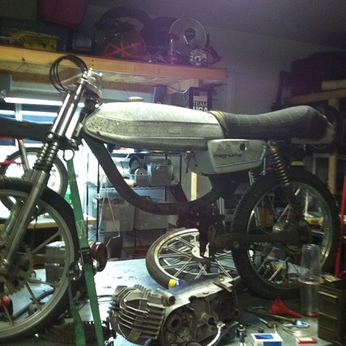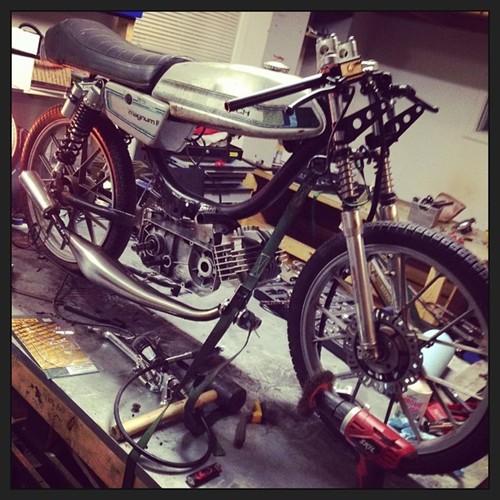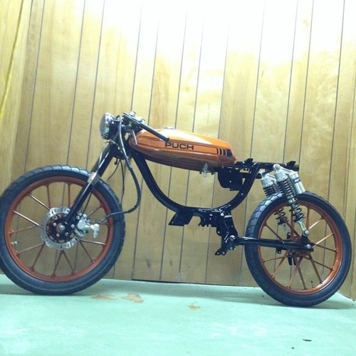 Derbi Burger By Tyler Jung · Puch Magnum II · 1980 Added Aug 7, 2014 · Updated Nov 23, 2014 ♥ 13 likes ‹ › 1 / 11 × ‹ › Almost done... will update soon... Parts engine Derbi Piston Port Derbi Piston Port 77 Peugeot 70cc Gilardoni electrical Derbi HPI Mini Rotor CDI exhaust Derbi Zen carburetion Mikuni TM 24mm Flatslide Comments (2) Tyler Jung — 11 years, 8 months ago thanks man! actually ended up with a pair of k-10s on there so the headlight mounts have been changed! ha Dan Kastner — 11 years, 8 months ago Epic looking build! I think those headlight ears are going to be a touch long though. Everything else about this is amazing and spot on.
