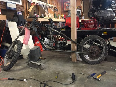 • The frame was a 70s 50cc dirtbike of some sort, that I ended up making a hardtail for