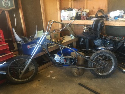 • The handlebars were stock maxi handle bars heated and bent in with a rebar cross section welded in.