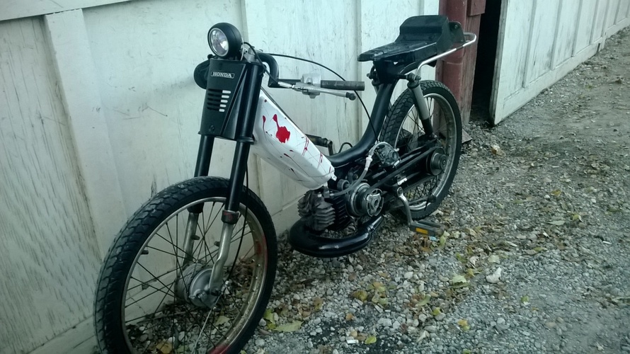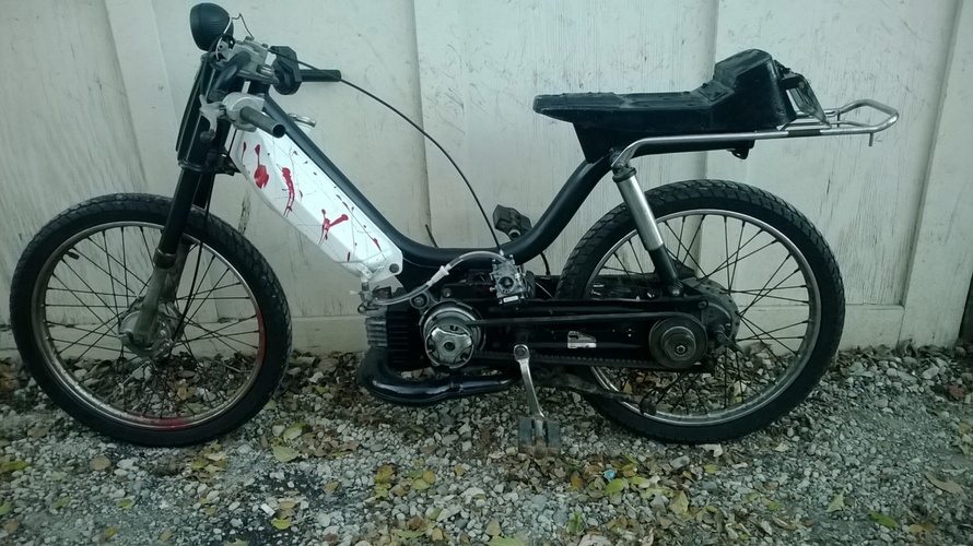Got it for free and was haggard as fuck when I got it! Stripped the paint, broke it down and completely rebuilt the motor with all the goods! Parts not listed; new bearings and seals. Boyseen dual stage reeds, bored out stock intake, red MLM 21mm intake, TJT 6 roller variator, Micheline M62 Gazelle tires, Lustro controls, clubman drop bars, cables.