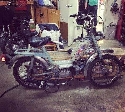 I built this bike to mess around in the wooded areas behind the old Zeros shop, its your basic V1 Polini with short gears, 10x38, yellow springs, and a scooter pipe welded to a Tomo Biturdo header, knobbies, and wide bars, I also spigot mounted the vm so that it wouldnt snap the carb body while it was knocking around in the dirt, success on all accounts, I really love this bike!